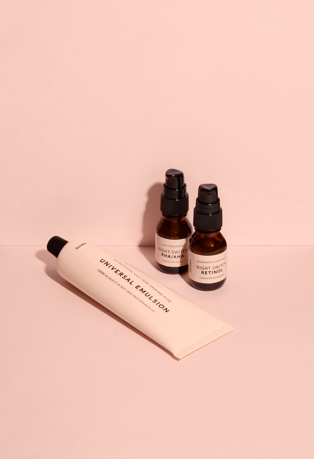 We wanted a targeted night care for skin concerns that allows the skin to rest and reset. NIGHT SWITCH are formulated with pure active molecules for when your skin switches to repair mode in the evening.